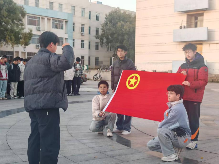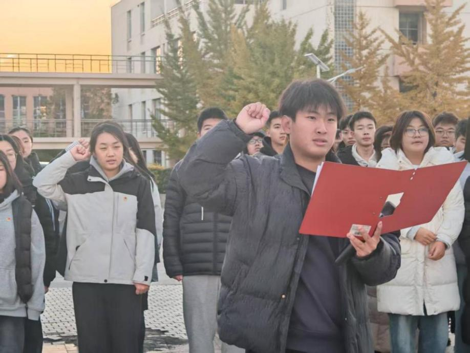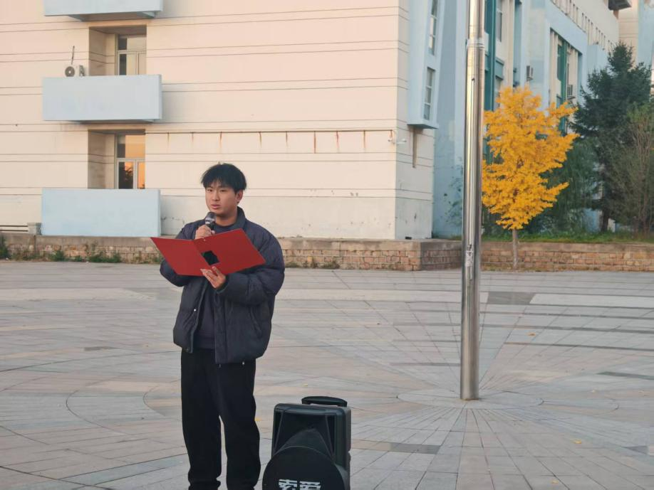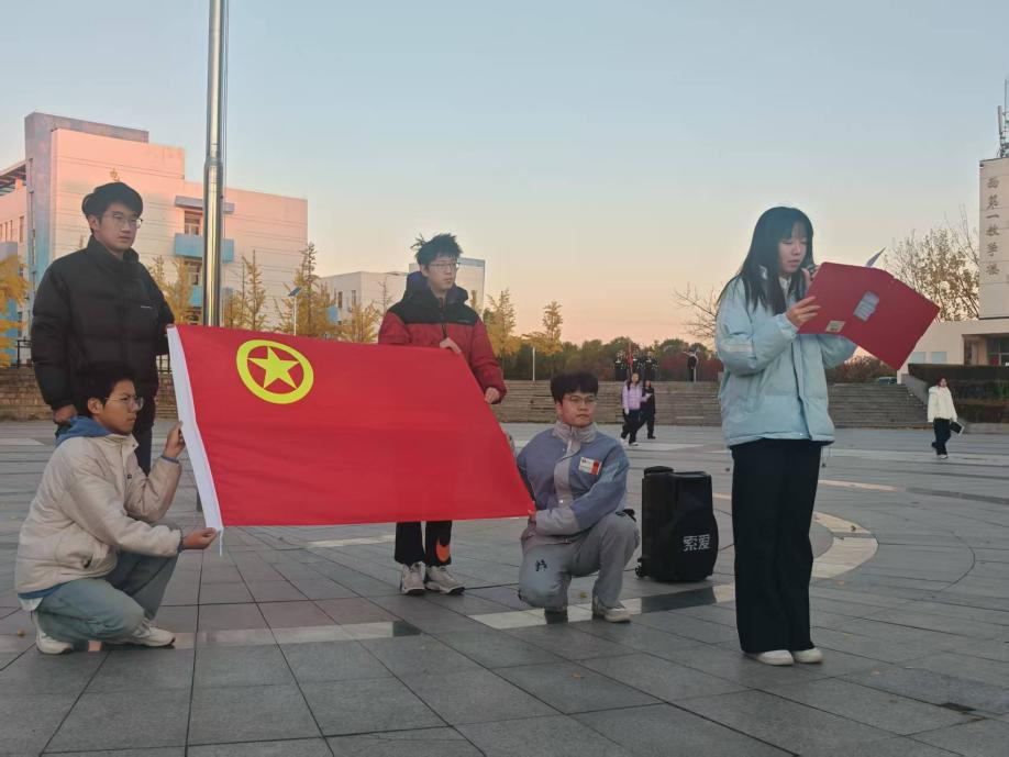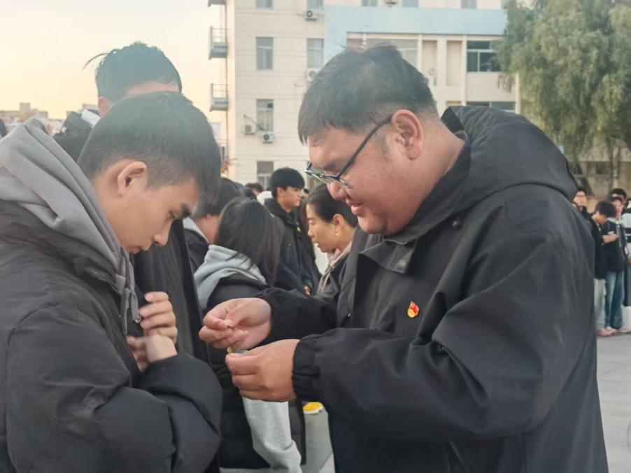 庄严肃穆的升国旗仪式结束后,团委组织部主席胥梦缘宣读了新团员名单,并对他们送上热烈祝贺,提醒新团员们用行动践行入团誓词,发扬先锋模范精神。随后,团委书记魏东老师和2025级本科生辅导员冯晶老师为新团员佩戴团徽,嘱托新团员们牢记闪亮的团徽别在胸前,不仅是一份荣誉,更是一份责任与使命。