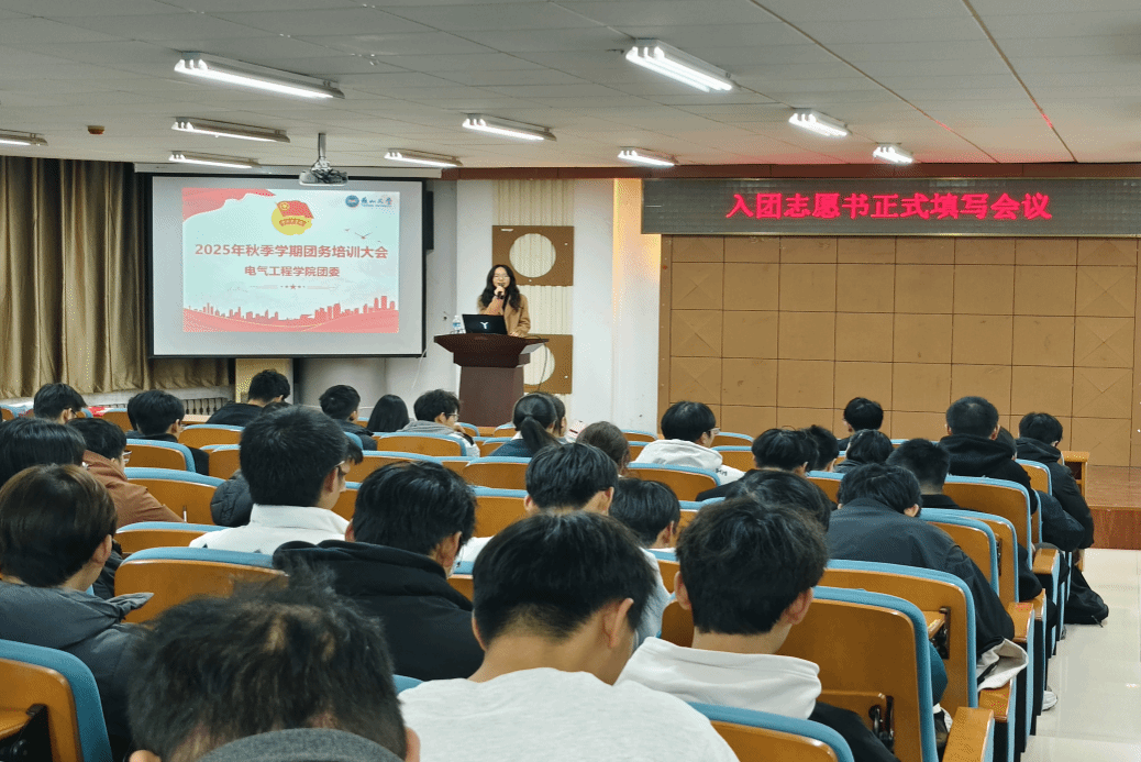 为严格落实共青团入团工作要求,规范入团申请流程,引导青年学生深入理解共青团的使命与责任,近日,电气工程学院团委组宣在电A101报告厅组织召开了团员培训大会。此次会议由电气工程学院团委组宣工作人员主持,各班团干部和团员代表参加会议。