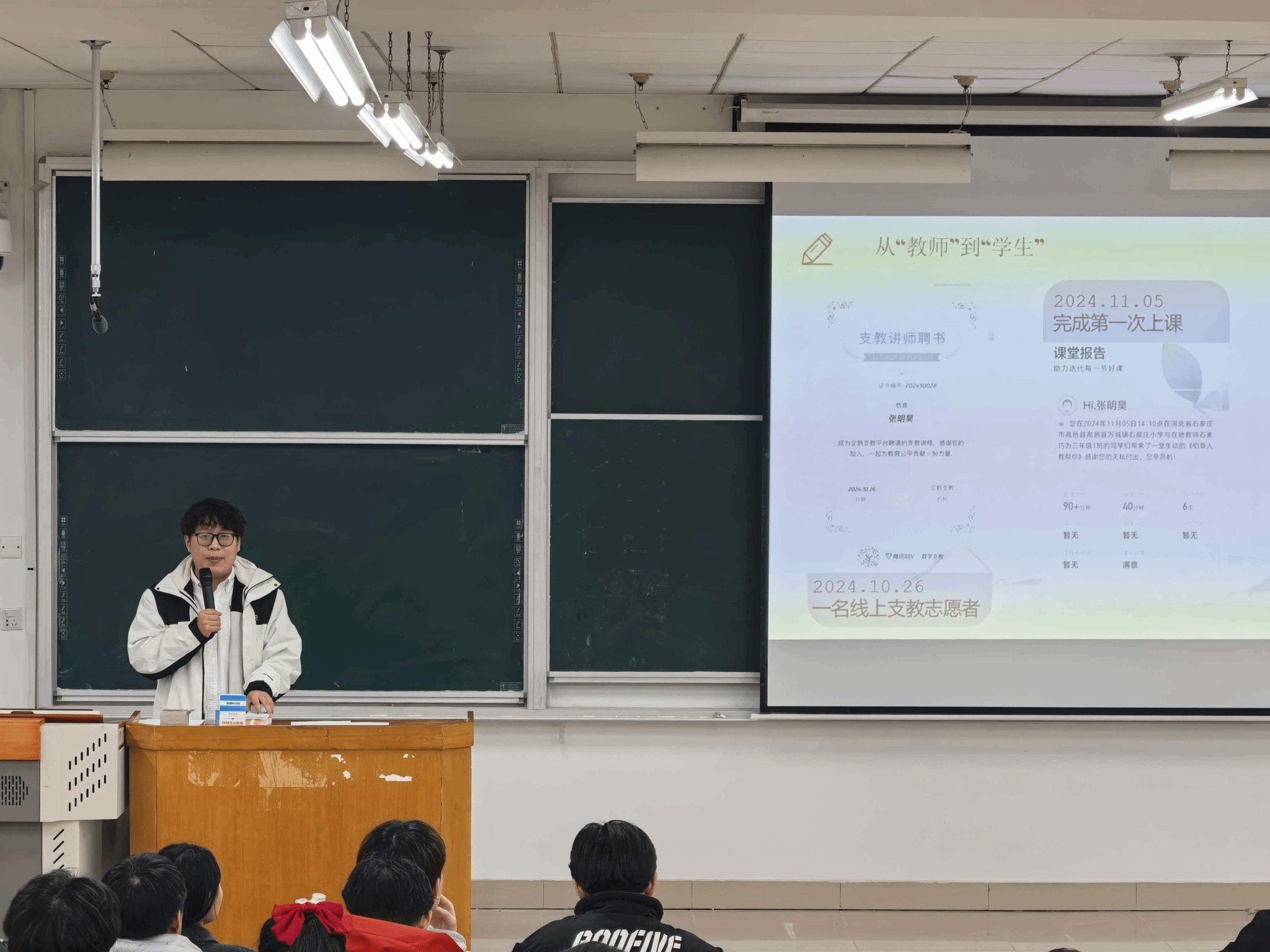 紧接着,青年先锋宣讲团团长张明昊带来了他在大凉山的支教故事。一张张山里孩子举起相机的照片,记录着“微光摄影社”带给孩子们的改变;一个个云端课堂的画面,展现着“青燕助学计划”点燃的希望。“教育不仅是传授知识,更是播撒梦想的种子。”他坚定的话语感染着在场的每一个人,“用青春之光点亮希望之灯,这就是我们这代人的担当。”