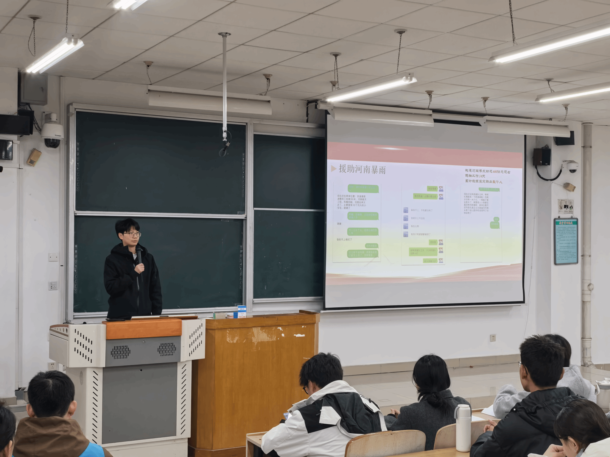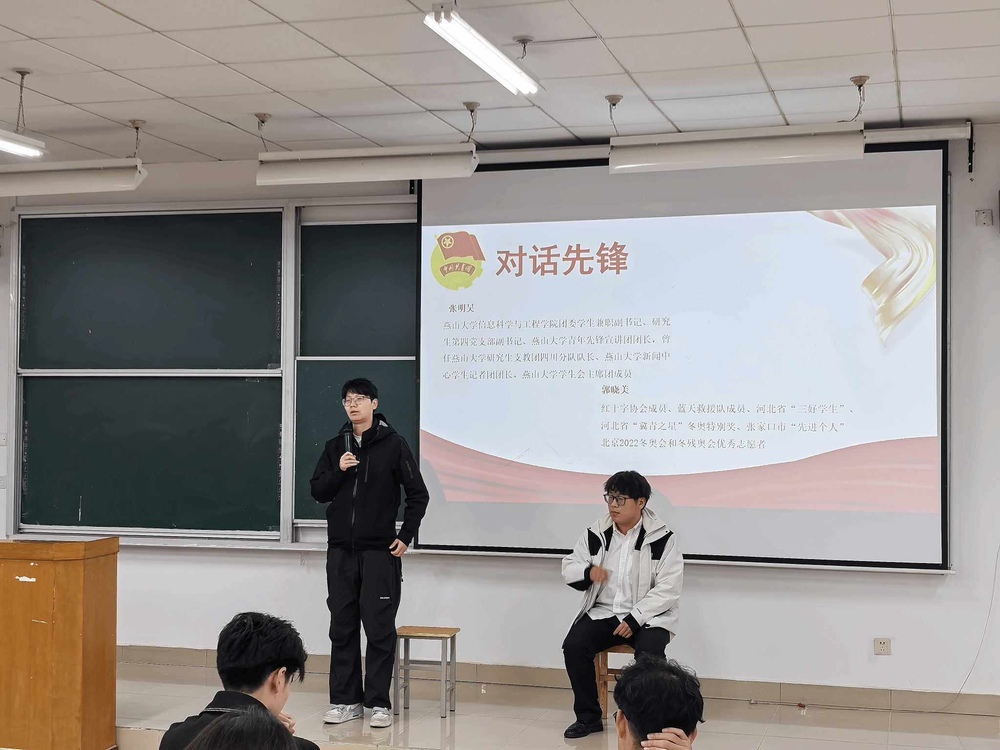 宣讲会在热烈的掌声中拉开帷幕,学院团委学生兼职副书记李铭雨主持活动,他号召全体同学要深刻认识新时代青年肩负的历史责任,以先锋为榜样,在实干中增长才干,在奉献中实现价值,为整场活动定下了激昂的基调。