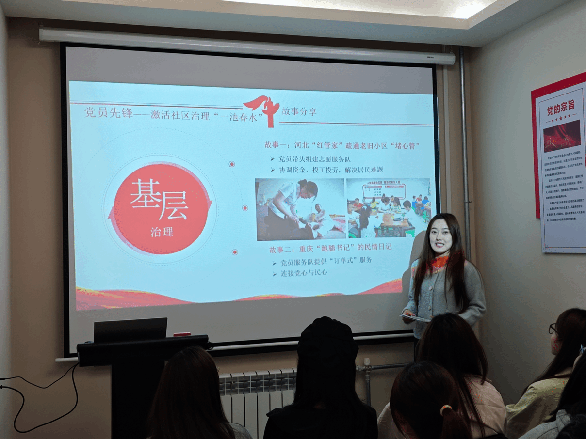宣讲团团长朱瑞进一步介绍了“红色旋律”学生宣讲团的基本要求、宣讲礼仪及与社区对接流程,并结合三位新成员的试讲表现给予细致点评。她鼓励大家在实践中不断锤炼宣讲技巧,注重情感共鸣与价值引导,让理论宣讲真正入耳入心。