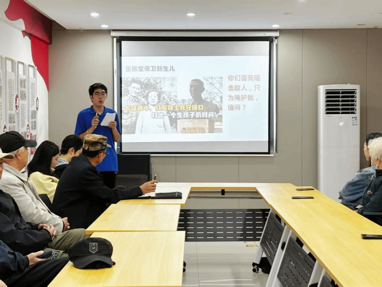 宣讲现场,宣讲人段富鑫以“长征虽然结束,但是长征精神却存在我们心中”为切入点,带社区听众们回顾了当年红军长征途中的艰难险阻,用生动鲜活的语言讲述了红军在长征途中“四渡赤水”“飞夺泸定桥”“过雪山草地”等经典战役背后的故事。他特别提到,长征不仅是一场军事上的战略转移,更是一次信念与意志的考验,红军战士们靠着革命理想高于天的坚定信念,在极端艰难的条件下突破重重封锁,这种精神放到今天依然具有强大的感召力。除此之外,他还提到来自河北省新河县的人民英雄董振堂保卫新生儿的故事,传递了我们党始终坚持人民至上,生命至上的初心和使命。